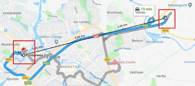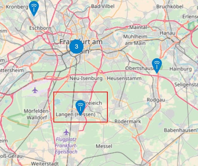 After the initial test worked fine to bridge approx. 10 cm (see Figure 2) using LoRa communication to our own gateway, some further tests have been done while a customer visit in the Netherlands, what is a leading country in term of LoRa. From the hotel, approx. 6.7 km have been bridged to the next gateway as shown by Figure 9 and the gateway details in Figure 10.