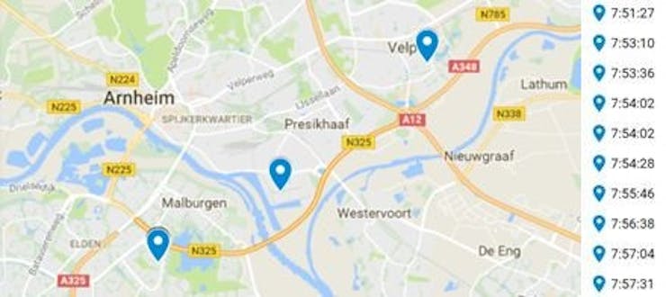 While returning from the customer visit, driving through the Netherlands, the PSoC 6 MCU LoRa device was running in the car, and connected to several gateways next to the highway A12.