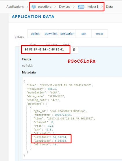 The PSoC 6 MCU with LoRaWAN software stack has entered successfully to the TheThingsNetwork.