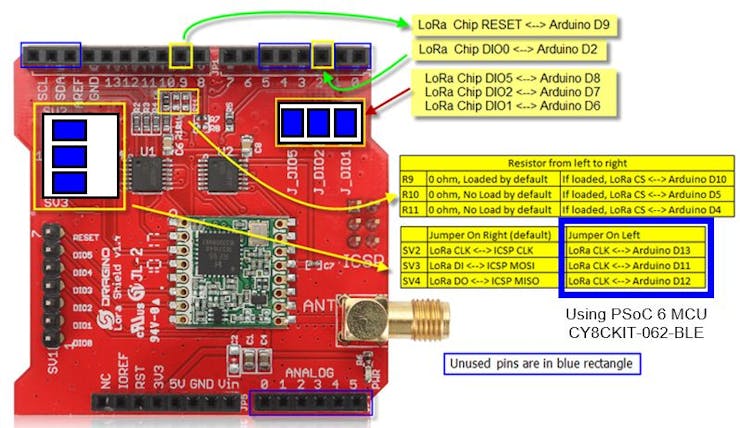 Setting up a LoRa peer-2-peer communication by using CY8CKIT-062-BLE with Arduino Shield (Dragino LoRa, RFM95W).